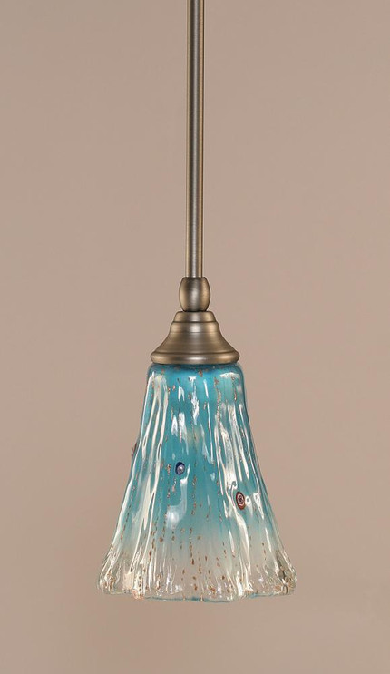 Stem Mini Pendant With Hang Straight Swivel Shown In Brushed Nickel Finish With 5.5" Fluted Teal Crystal Glass